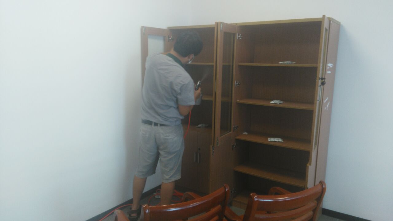 針對其結(jié)構(gòu)特點及污染情況,我公司技術(shù)及施工人員經(jīng)過認真考察,制訂了合格的施工方案,針對易散發(fā)甲醛等有害物質(zhì)的污染源,重點治理,對重新粉刷的墻面使用我公司研發(fā)的利純納米光觸媒進行甲醛清除,這些地方光照量較充足,便于光觸媒對甲醛的分解,對于刷漆的辦公家具、書桌、儲物柜、木門、地板等采用甲醛清除劑進行處理,針對不同污染物,做分別處理。經(jīng)過我公司重點治理,一周后復(fù)查結(jié)果各種有害物質(zhì)含量均已達到國家標準以內(nèi),各項指數(shù)均達標。客戶員工感覺氣味明顯消除,為業(yè)主清理甲醛,還顧客一個安全,健康的生活環(huán)境是我們?nèi)w工作人員的責(zé)任,下面為施工現(xiàn)場照片: