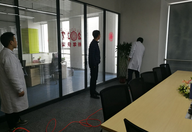 大發(fā)地產(chǎn)(寧波凱旸置業(yè))全新裝修,裝修完工時間短,另外辦公家具為全新,進入室內(nèi)油漆味明顯,公司員工對此反應(yīng)強烈,我公司在接受寧波凱暘置業(yè)委托后,派專業(yè)工程師上門查看現(xiàn)場,分析污染成因,并未其制定了科學的室內(nèi)空氣整體凈化治理的施工方案,得到大發(fā)地產(chǎn)公司領(lǐng)導的認可后,我公司派出治理經(jīng)驗豐富的工程師和施工人員對室內(nèi)辦公環(huán)境進行全面凈化,針對墻壁涂料、地毯以及辦公家具等污染源,公司具有針對性利用納米光觸媒、甲醛清除、苯清除劑等分別進行處理,施工是采用高壓霧化的狀態(tài)下進行噴涂,讓甲醛、苯系物和TVOC的全面無死角得到清除。