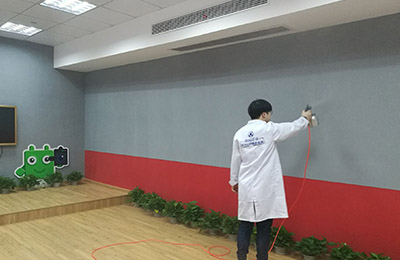 針對其空間結(jié)構(gòu)特點(diǎn)、污染物種類、污染源頭,結(jié)合我公司多年的幼兒園、早教機(jī)構(gòu)的治理經(jīng)驗,針對易散發(fā)甲醛等有害物質(zhì)的污染源,重點(diǎn)治理,對教師的辦公室辦公家具,因為板材較厚,不易滲透,我公司采用高溫熏蒸技術(shù)將甲醛清除劑強(qiáng)力滲透進(jìn)板材內(nèi)部,對粉刷的墻面,使用利純納米光觸媒,進(jìn)行甲醛清除,這些地方光照量較充足,便于光觸媒對甲醛的分解,對于辦公家具、書桌、儲物柜、木門、地板等污染重災(zāi)區(qū),采用甲醛清除劑進(jìn)行處理,且施工使用產(chǎn)品安全無毒,產(chǎn)品已通過國家權(quán)威部門安全無毒檢測。在每一遍施工中,我們不放過任何一個可能釋放甲醛的污染源頭,施工時輕拿輕放,施工后將所有物品回歸原位,良好的施工態(tài)度得到了相關(guān)負(fù)責(zé)人的肯定。